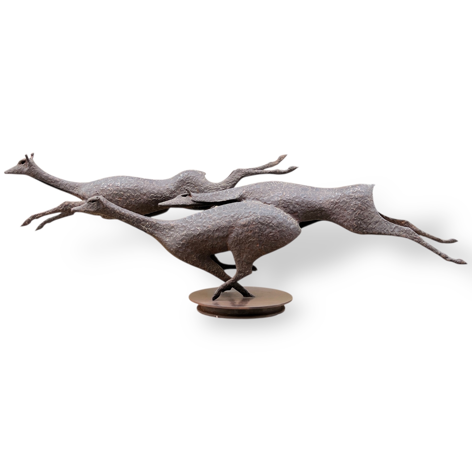 La Prairie (1972) est une sculpture en fer forgé de 103 cm de longueur, représentant trois biches. L’œuvre capture avec précision la grâce et la vigilance des animaux.